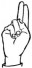 На ћирилици написано МИРЈАНА БАДРИЋ састоји се из 13 слова [?]. Исписано ћириличном једноручном азбуком за глувонеме: